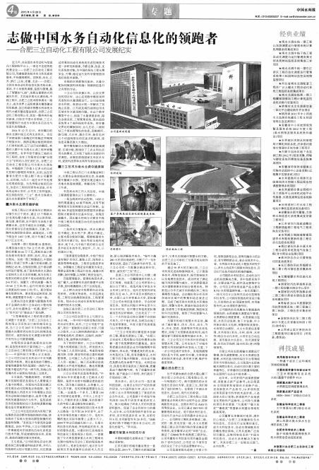 2015年4月28日第3623期《中國水利報》在第四版整版專題報道了我司近年的發(fā)展歷程,文章中高度肯定、贊許我公司近年來在水利自動化和信息化方面的努力結果。
