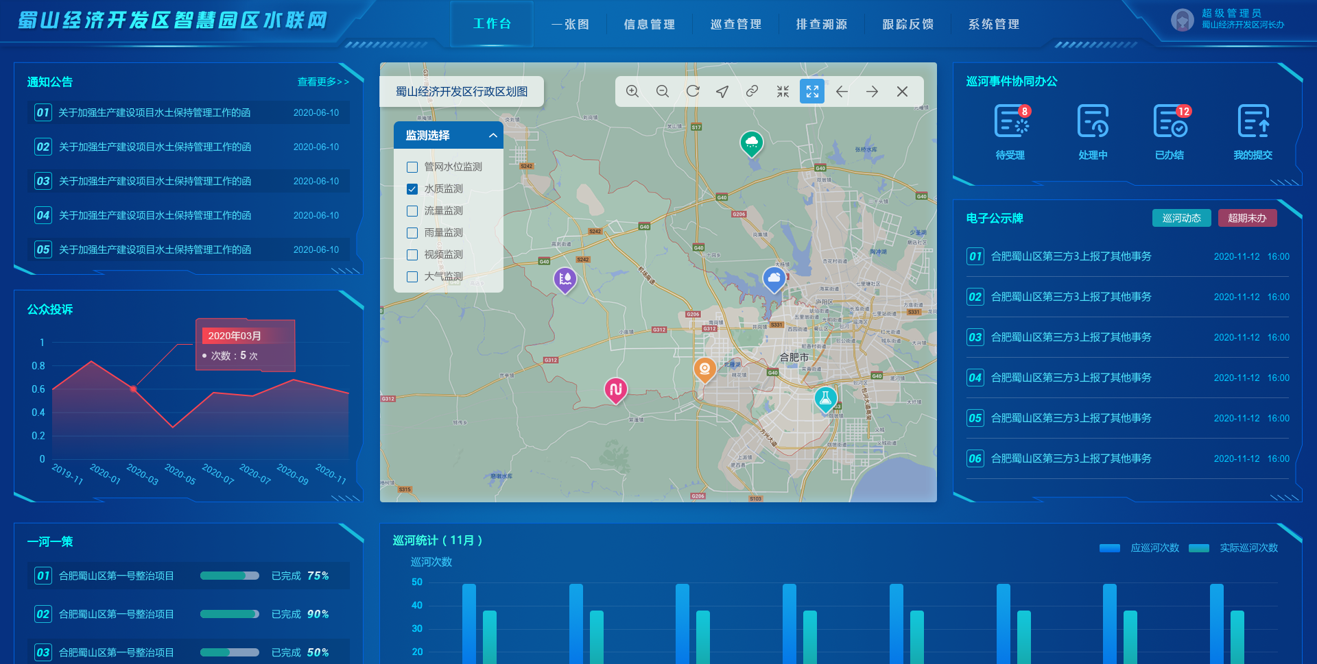 蜀山經濟開發(fā)區(qū)2019年入選安徽省創(chuàng)新型智慧園區(qū)試點,同年9月獲得國家級“數字智慧園區(qū)”榮譽。中水三立作為蜀山區(qū)智慧園區(qū)水聯網項目承建單位,將建設以智能傳感器等感知設備、GIS技術、互聯網、物聯網、移動通訊網絡、水務數學模型等為主要內容的智慧水聯網管理體系,建設完成水務管網規(guī)劃、輔助決策、水務設施綜合管理、水務管網防汛搶險調度指揮的一體化決策管理平臺。