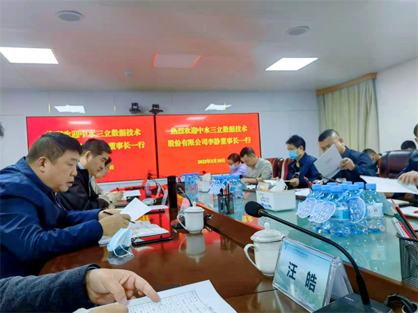 廣西右江水利公司總經(jīng)理袁文傳、總工鄧勛發(fā)、副總經(jīng)理王偉、副總工黃承泉及庫區(qū)、樞紐、電廠、信息部等相關(guān)部門領(lǐng)導(dǎo)一行,與中水三立董事長李靜、副總裁常仁凱、副總經(jīng)理汪皓、副總工梁云、南方區(qū)總監(jiān)謝蕊及相關(guān)技術(shù)負(fù)責(zé)人進(jìn)行會議交流。