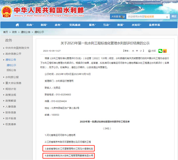 水利部認(rèn)定!首批24處標(biāo)準(zhǔn)化管理工程,我司參建2處!