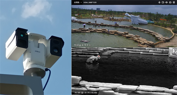 龍子湖東南片公園面積較大,龍鱗疊水、金沙灘、游龍棧道等處游客眾多,存在一定安全隱患。智慧一體桿頂端部署了熱成像觀測型四目中型云臺監(jiān)控系統(tǒng),滿足景區(qū)夜間/惡劣天氣、中/遠(yuǎn)距離監(jiān)控清晰成像的需求,公園防火防災(zāi)、禁漁禁捕、水環(huán)境污染監(jiān)測、防溺水等場景的一舉一動盡收眼底,實現(xiàn)“全覆蓋、全天候、智能化”監(jiān)管。