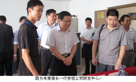 2012年8月24日下午,合肥市科技局朱策局長(zhǎng)一行來(lái)我公司視察工作,同行的還有何江副局長(zhǎng)等科技局相關(guān)處室領(lǐng)導(dǎo)、蜀山區(qū)政府及區(qū)管委會(huì)相關(guān)領(lǐng)導(dǎo)。朱局長(zhǎng)一行參觀了我公司省級(jí)水務(wù)自動(dòng)化工程技術(shù)研究中心及產(chǎn)品生產(chǎn)中心,并認(rèn)真聽(tīng)取了公司創(chuàng)新及業(yè)務(wù)開(kāi)展工作情況的匯報(bào),會(huì)上朱局長(zhǎng)一行針對(duì)公司現(xiàn)階段發(fā)展情況進(jìn)行了深入的探討和交流,并提出了寶貴的意見(jiàn)和建議。